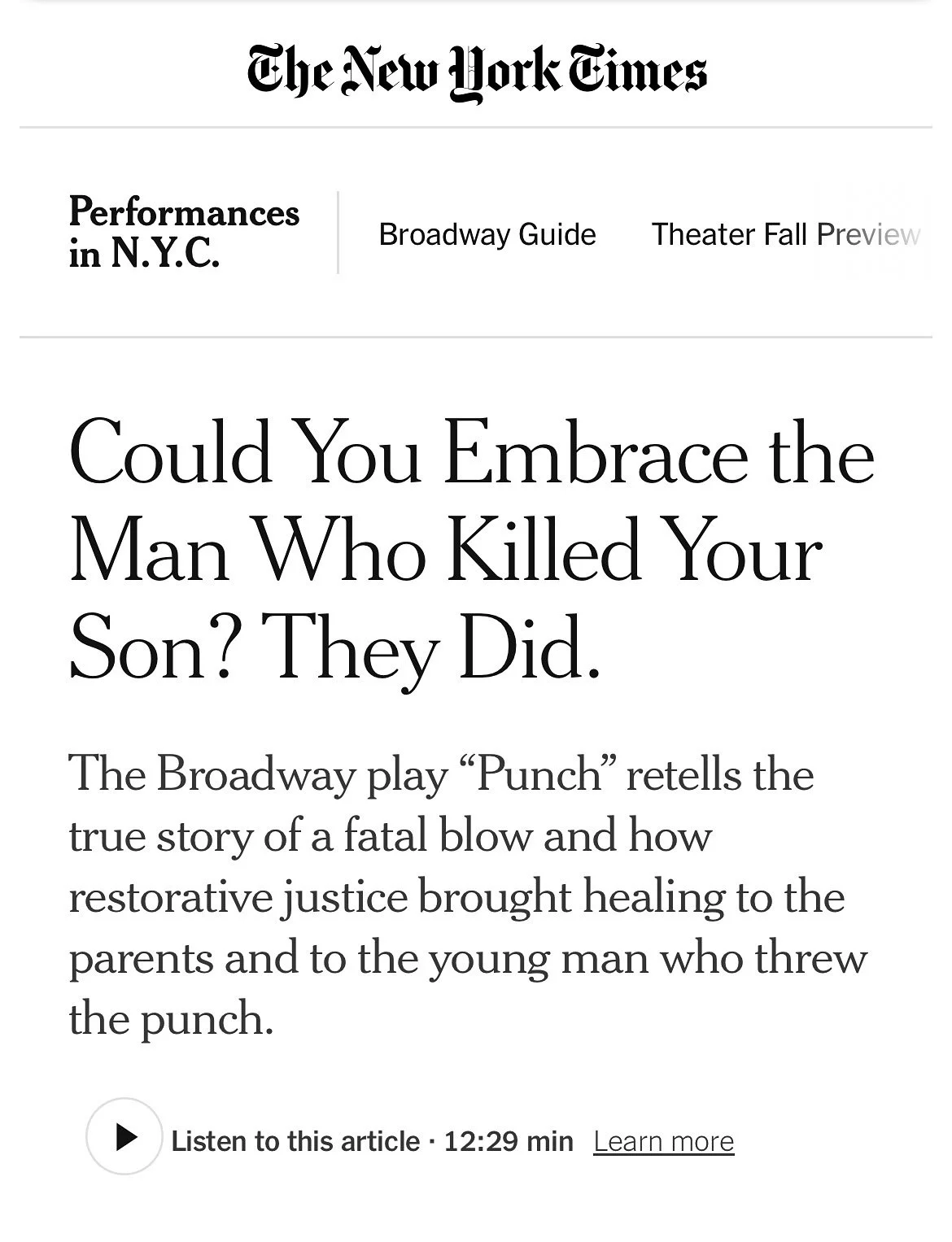 The New York Times asks, “Could you embrace the man who killed your son?”